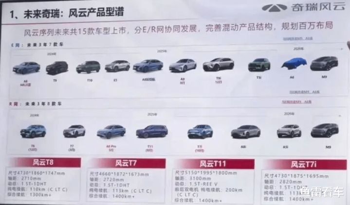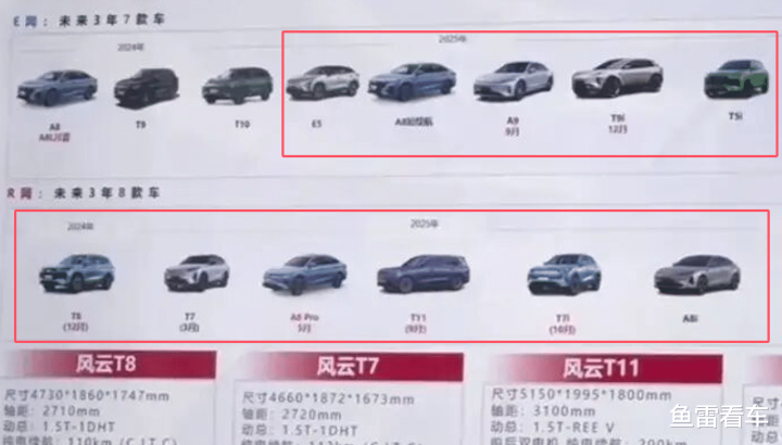 注意2025年上市的车型,上一列是E网的,下一列则是R网的,E网的有E5、A9、T9i、T5i,其实还有全新的T9和T10等车型,A8L也算一个。而R网则是T8、T7、T7i、T11、A8i等车型。